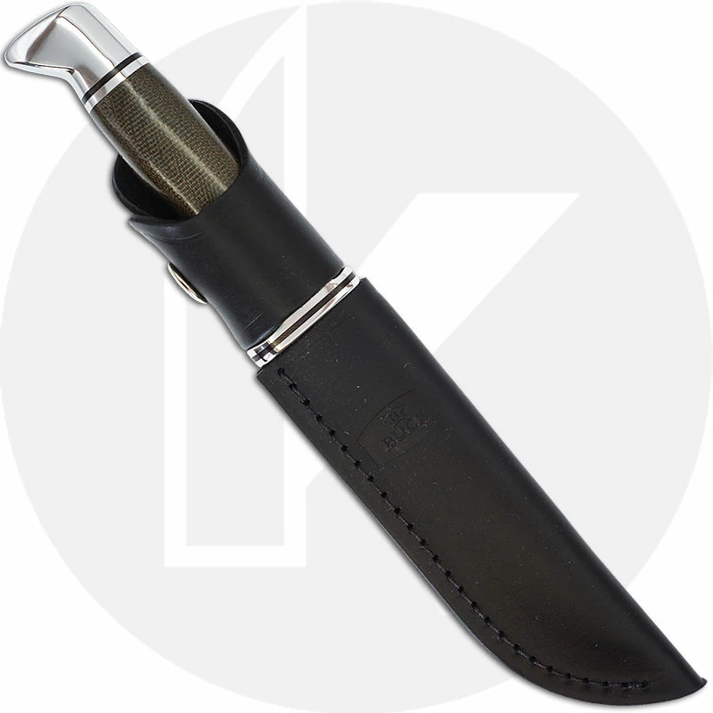 From the Buck website: A smaller version of the 119, the classic 105 Pathfinder is Buck’s medium-sized option in the famous 100 Series fixed blade line. Now with Buck’s premium S35VN steel and green canvas Micarta handles, the 105 is excellent for general outdoor use. Features including a modified clip blade, full tang construction, a finger guard integrated into the blade, a sure grip and a leather sheath help make this knife one of the best options for the serious outdoorsman who needs a do everything blade.