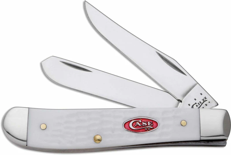The illustrated Case Knife is the SparXX (6207SS) Case Mini Trapper Knife that features clip and spey blades made of Tru-Sharp surgical stainless steel with nail nicks for opening. The Jigged White Synthetic handle of this Case knife, 3 1/2″ closed, comes with a red sparkle Case shield and nickel silver bolsters. The Case SparXX Mini Trapper Knife with Jigged White Synthetic handle weighs 2.7 ounces. Made in the USA.