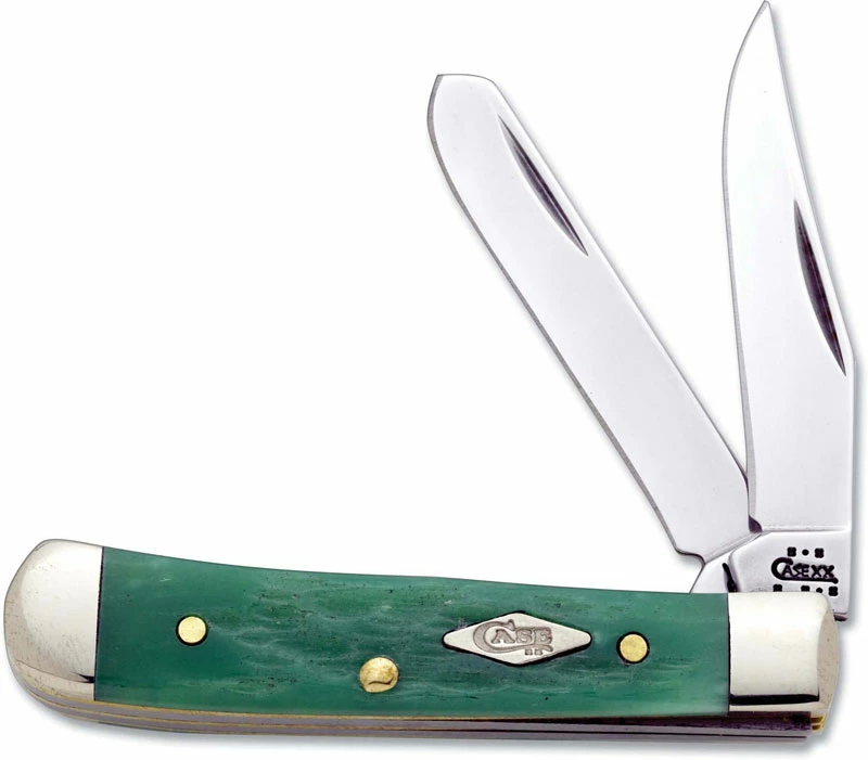 The 06253 Case Painted Desert (62154SS) Tiny Trapper Knife features clip and spey blades made of mirror polished Tru-Sharp Surgical steel with nail nicks for opening. The jigged Sage Willow Bone handle, 2 3/8 inches closed, has the Case Diamond Shield and nickel silver bolsters. The Case Tiny Trapper Knife weighs 1.0 ounce. Discontinued item, limited run of 500 pieces or less, BNIB; made in the USA in 2003.