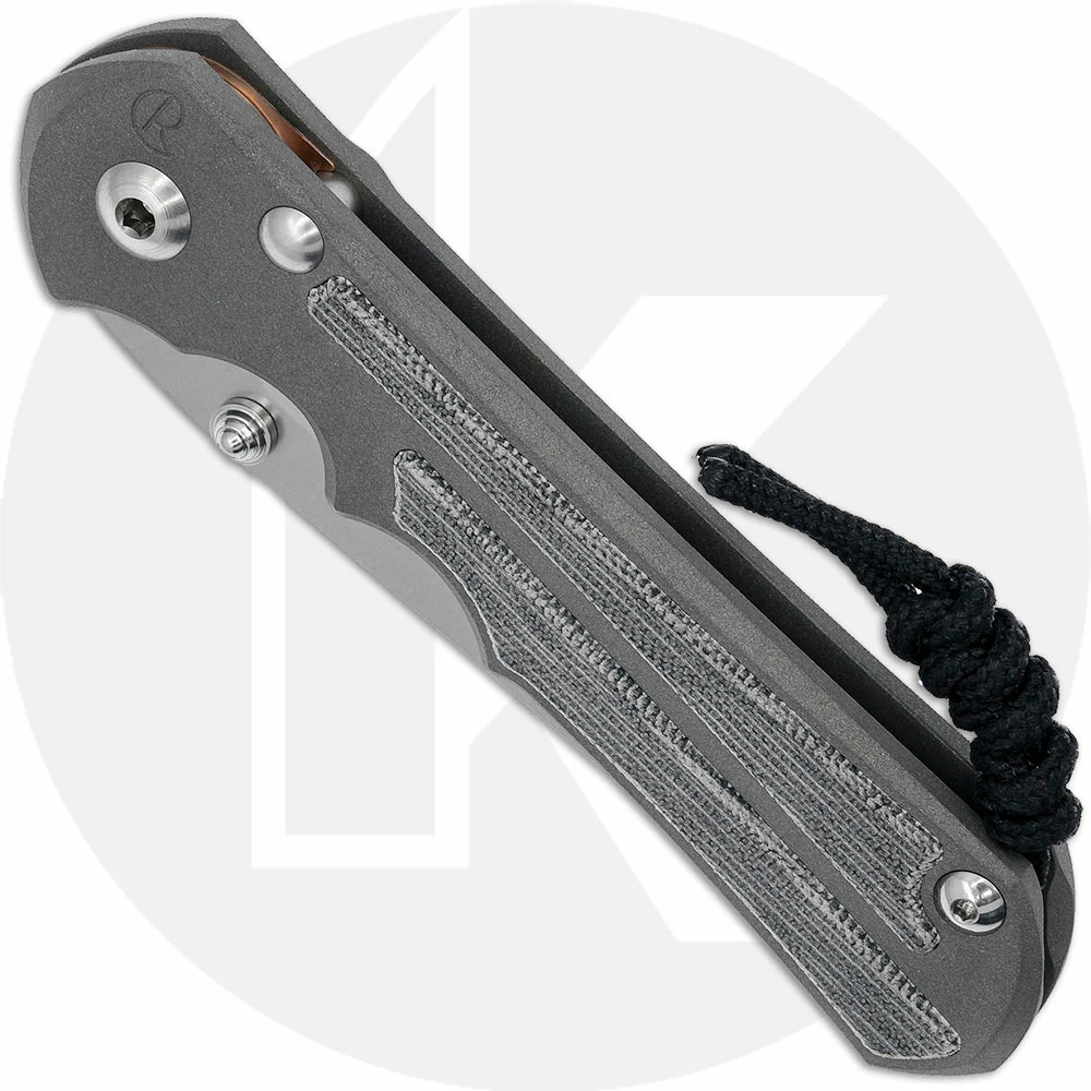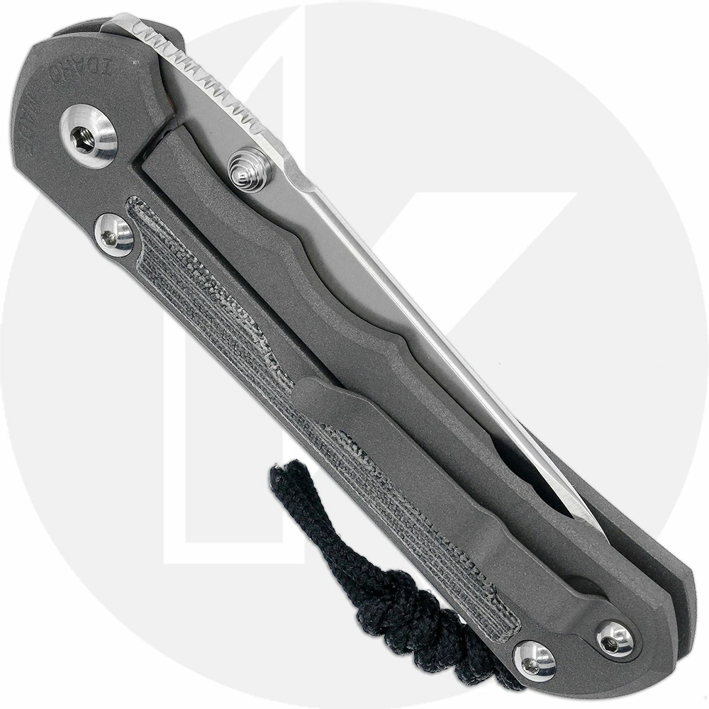 This Large Inkosi Knife, designed by Chris Reeve and manufactured by Chris Reeve Knives, features a 3.6″ Crucible S45VN stainless steel Insingo blade, .1400″ thick, with a Rockwell hardness of 59-60. The blade has a special large hollow grind for strength, a tumbled finish, a notched thumb rest for secure grip, and dual blue anodized titanium thumb studs for ambidextrous one hand opening. The sand blasted 6AL4V titanium handle, 4.8 inches closed, has attractive black canvas Micarta inlays, a sturdy pivot with large pivot screw and pin, oversized bronze phosphor washers to eliminate sideways blade play, and the innovative Reeve Ceramic Ball End Integral Lock that uses a ceramic ball as an interface for the lock bar to the blade tang for consistent solid lock up. (The ball also drops into a detent on the blade to ensure the blade does not open accidentally.) The handle has open frame construction, a lanyard post, and a removable pocket clip mounted at the butt end. The Large Inkosi has an overall open length of 8.4″, and it weighs 4.96 ounces. Proudly made in the USA.