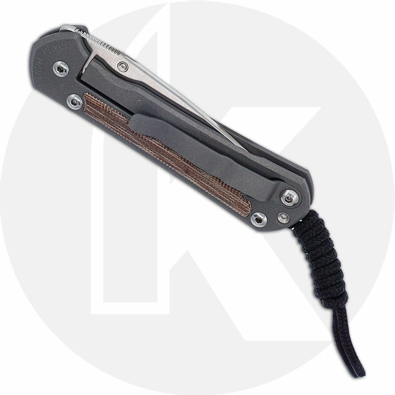 Chris Reeve Knives: Small Sebenza 31, Stonewash Drop Point, Natural Canvas Micarta and Sandblast Titanium, CRK-S31-1212