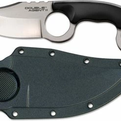 From Cold Steel: This classic sub-hilt design fighter was first developed by Bob Loveless, one of the founding members of the knifemaker’s guild. It’s perhaps the quintessential combat knife. Its 8″ blade offers excellent reach and incredible penetration with very little physical effort. The sub hilt practically eliminates the possibility of the hand being dislodged or coming into contact with the blade. Plus, the sub hilt facilitates rapid and effortless withdrawal after insertion. The VG-10 San Mai III® blade is perfectly heat treated and a double grind is expertly applied. Then the surface of the blade is polished to a beautiful satin finish and the edges are honed and buffed to hair shaving sharpness! The black G10 scales are fastened to the blade tang by 6 stainless pins and expertly hand shaped and contoured.