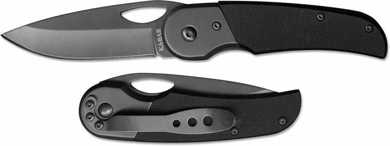 The illustrated KABAR Knife is the KABAR Tegu Folder that features a 2 7/8″ drop point blade made of 420 stainless steel, with a Rockwell hardness of 50-52. The blade of this KABAR Knife has a non reflective black coat and a hole for ambidextrous one hand opening. The black G10 handle has a black metal bolster and a liner lock. A stainless steel pocket clip is mounted at the pivot end of this KABAR Knife. The KABAR Tegu Folder has an overall open length of 6 7/8″ and it weighs .25 pounds. Imported from China.