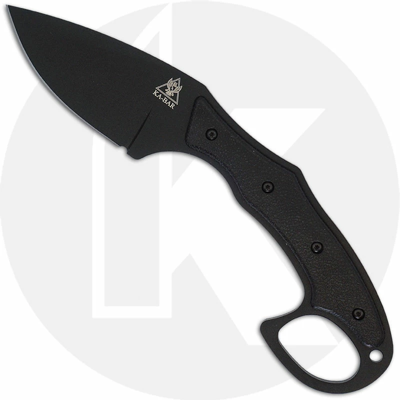 The 2491 KA-BAR TDI Pocket Strike Knife, designed by John Benner of the Tactical Defense Institute, is a compact discreet carry EDC that features a 3.188 inch drop point fixed blade made of AUS 8A stainless steel with a Rockwell hardness of 57-59, and a non reflective black finish. The TDI Pocket Strike has full tang construction for strength, black nylon / fiberglass scales and an extended ring pommel for quick deployment. A black hard plastic sheath with pocket clip is included. The KA-BAR TDI Pocket Strike Knife has an overall length of 7.75 inches, and it weighs 6.4 ounces. Made in Taiwan.