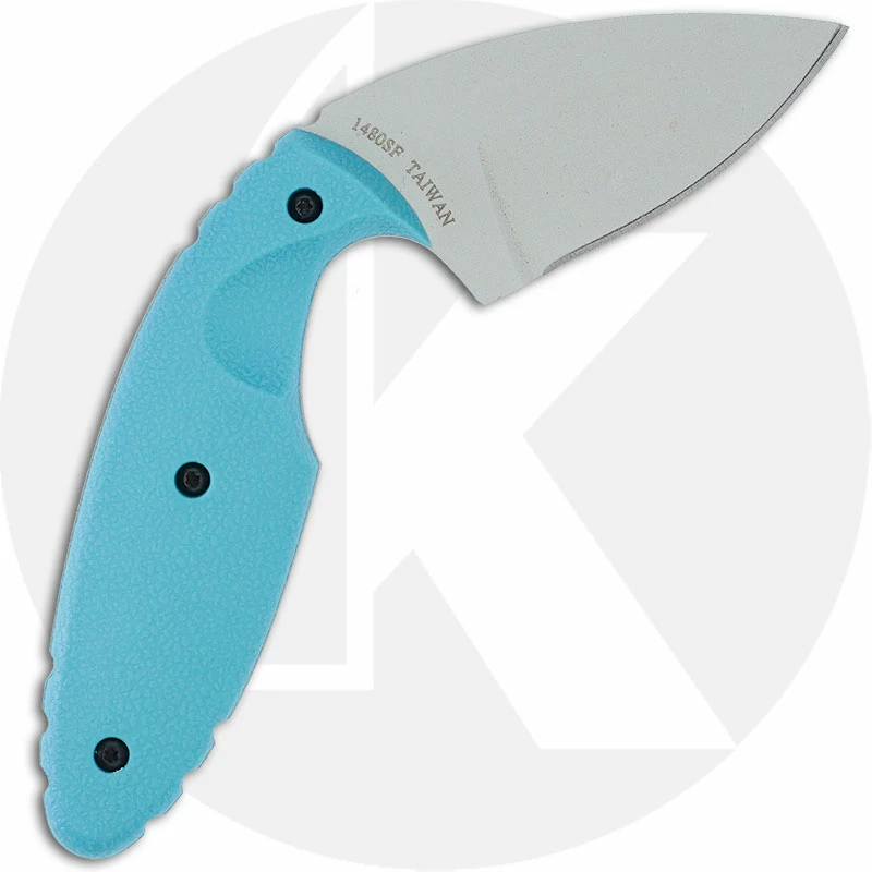 The 1480SF KA-BAR TDI Astro MP Knife, designed by John Benner of the Tactical Defense Institute, features a 2.313 inch drop point fixed blade made of AUS 8A stainless steel, .125 inches thick, with a Rockwell hardness of 57-59, and a non reflective gray powder coated finish. The TDI Astro MP has full tang construction for strength with notches for secure grip, and ergonomic blue Zytel scales. A gray hard plastic sheath with reversible belt clip is included. The KA-BAR TDI Astro MP Knife has an overall length of 5.625 inches, and it weighs 3.2 ounces. Made in Taiwan.