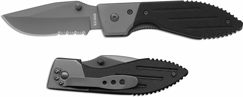 KA-BAR Knives: KABAR Warthog Folder, Part Serrated, KA-3073
