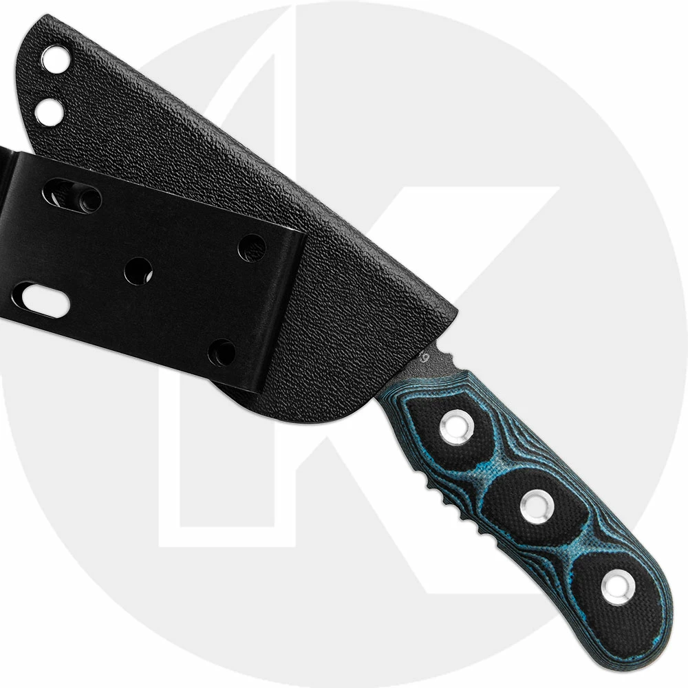 The BLUOT-01 TOPS Blue Otter Knife is a sleek little EDC that features a 3.50 inch drop point fixed blade made of 1095 steel, .190 inch thick, with a Rockwell hardness of 56-58. The blade has a 2.88 inch cutting edge, non reflective Tactical Grey finish, and notched thumb ramp for secure grip. The Blue Otter Knife has full tang construction for strength and ergonomic blue / black G10 for comfort. A black Kydex sheath with rotating spring steel clip is included. The TOPS Knives Blue Otter has an overall length of 6.25 inches, and it weighs 4 ounces; 5.4 ounces with the sheath. Made in the USA.
