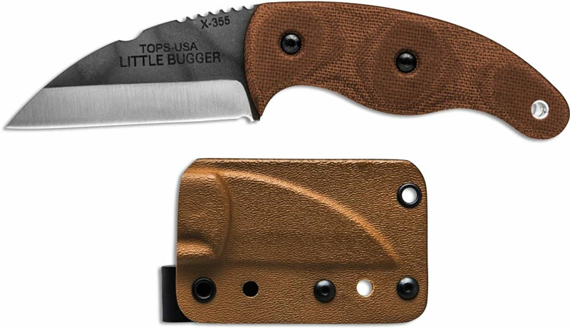 TOPS Knives: TOPS Little Bugger, Tumble Finish with Tan Micarta, TK-LILB01