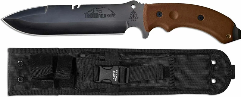 TOPS Knives: TOPS Tahoma Field Knife, Black River Wash with Tan Micarta, TK-TAHO01